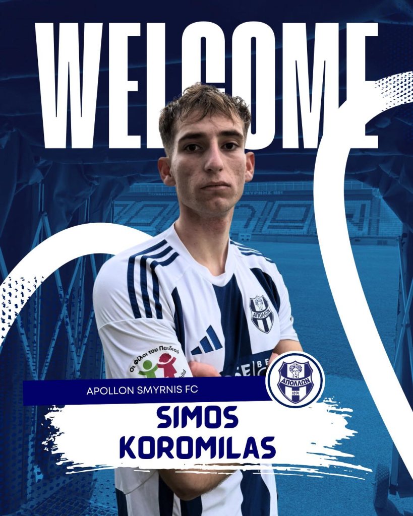 Αναλυτικά, η σχετική ανακοίνωση την Πέμπτη (8/1/2026) αναφέρει τα εξής: «Ο Απόλλων Σμύρνης ανακοινώνει την απόκτηση του Σίμου Κορομηλά, ο οποίος εντάσσεται στο ρόστερ της ομάδας μας κατά τη χειμερινή μεταγραφική περίοδο, ενόψει της συνέχειας της αγωνιστικής σεζόν 2025–2026.