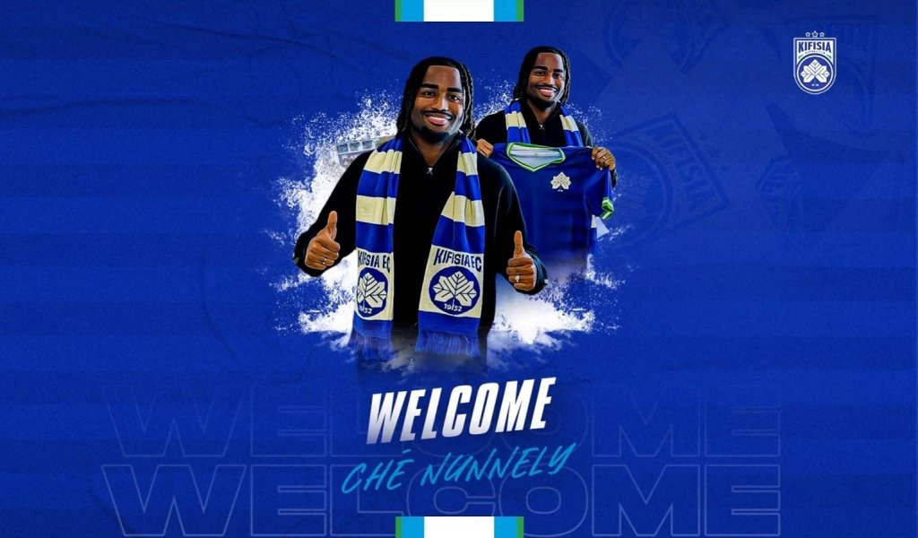 «Η ΠΑΕ Κηφισιά ανακοινώνει την έναρξη συνεργασίας με τον Ché Nunnely, ο οποίος αγωνίζεται ως ακραίος επιθετικός.